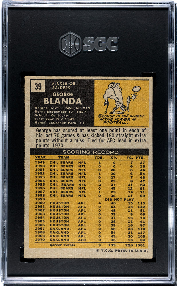 You are purchasing a 1971 Topps George Blanda #39 SGC 5. You will receive the exact item in the photographs. Thank you for looking. Listed With Mascot.Returns & Exchanges