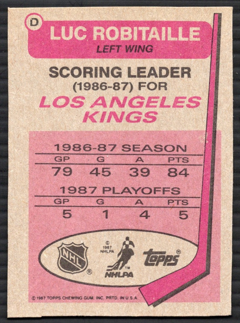 1987-88 Topps Box Bottom Luc Robitaille #D Rookie RC HOF ROOKIE