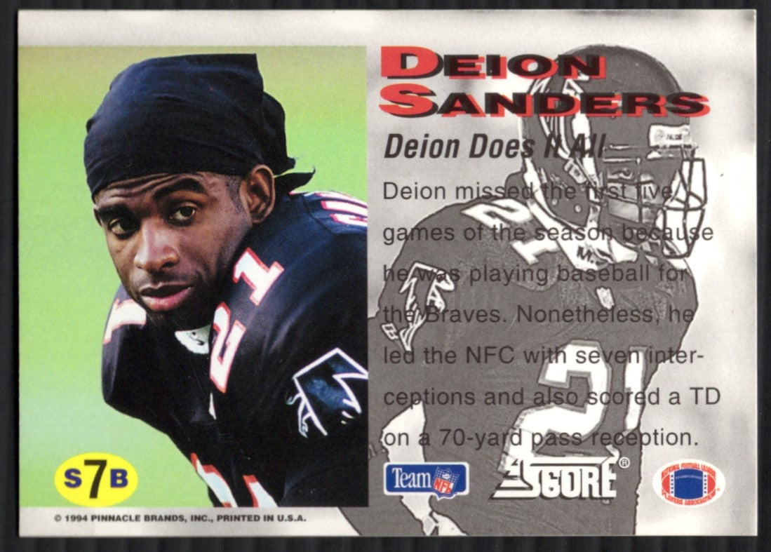 009-L62 You are purchasing a 1994 Score Deion Sanders #S7B. You will receive the exact item in the photographs. Thank you for looking. Listed With Mascot.Returns & Exchanges