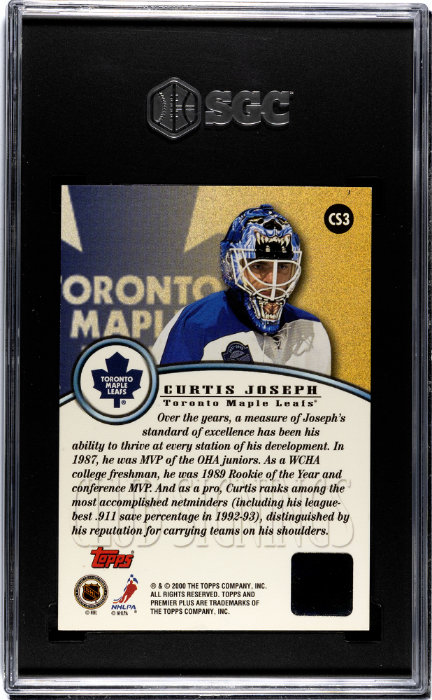 1999-00 Topps Premier Plus Curtis Joseph Club Signings Auto Maple Leafs SGC 8.5