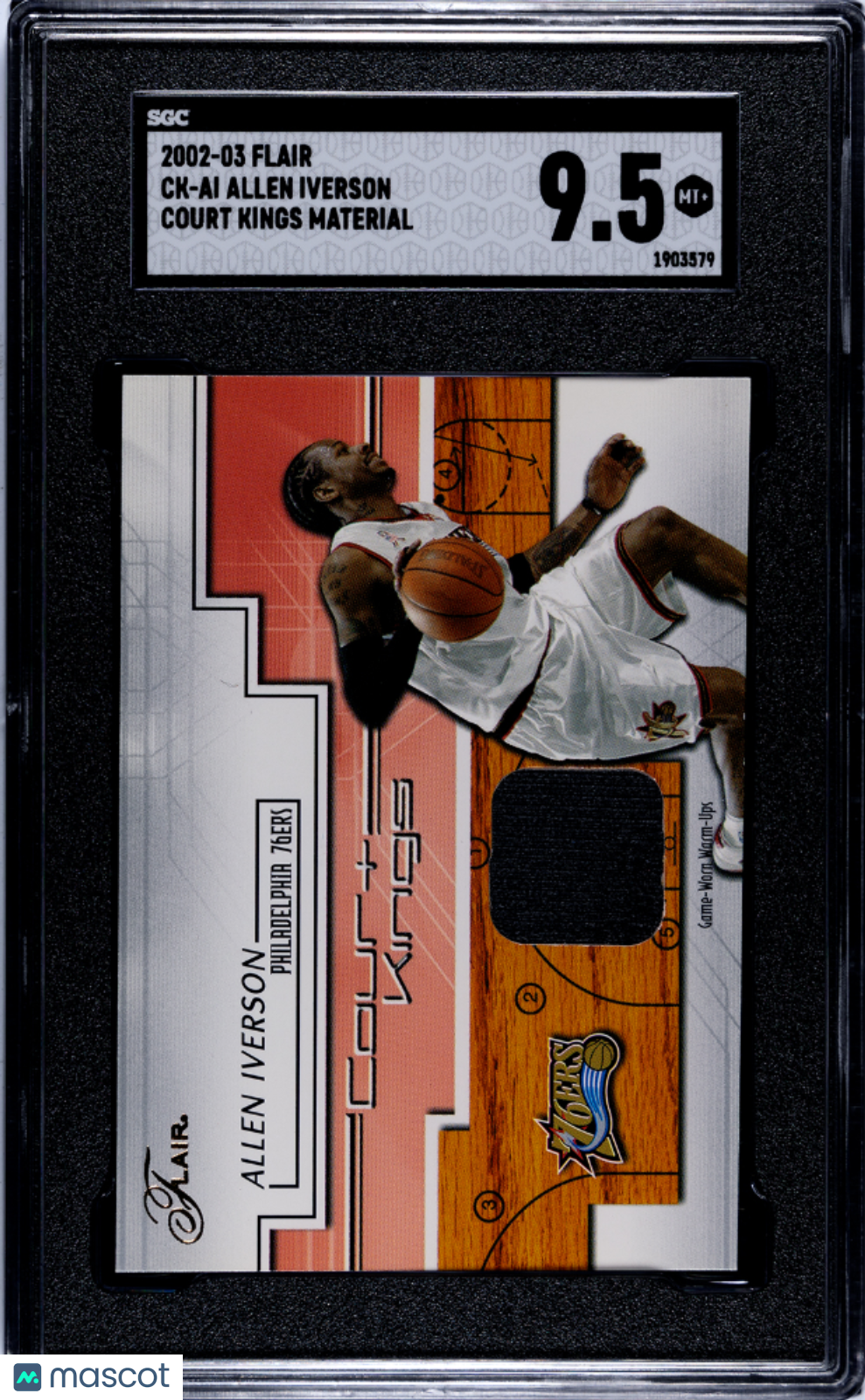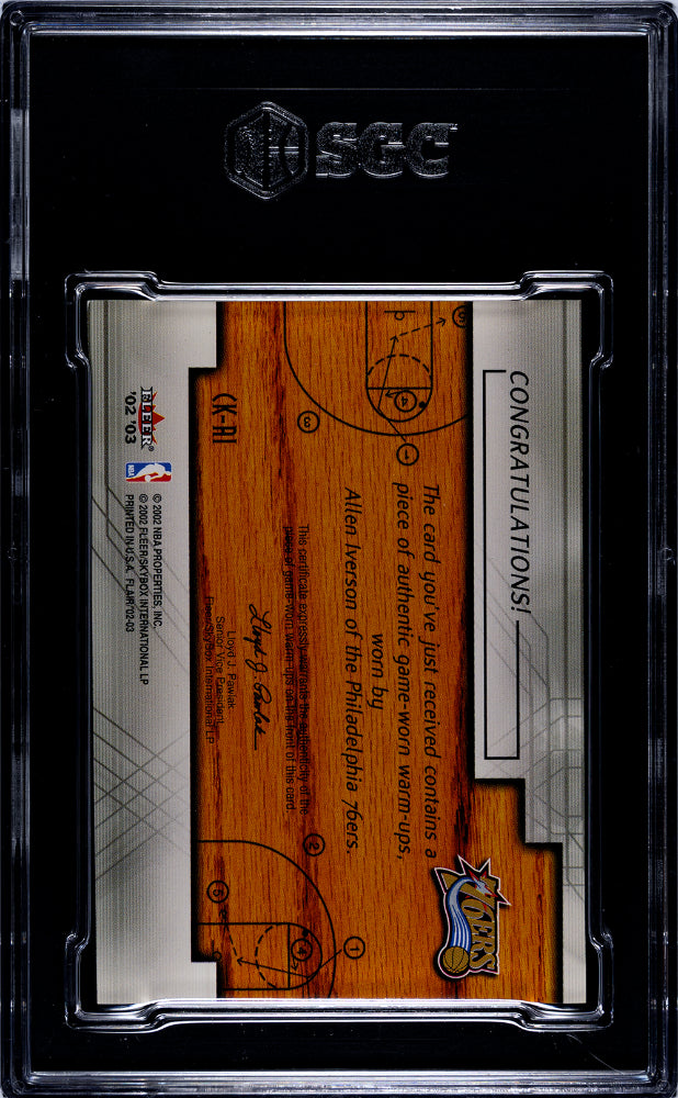 2002-03 Flair Allen Iverson Court Kings Material Philadelphia 76ers SGC 9.5 A-9