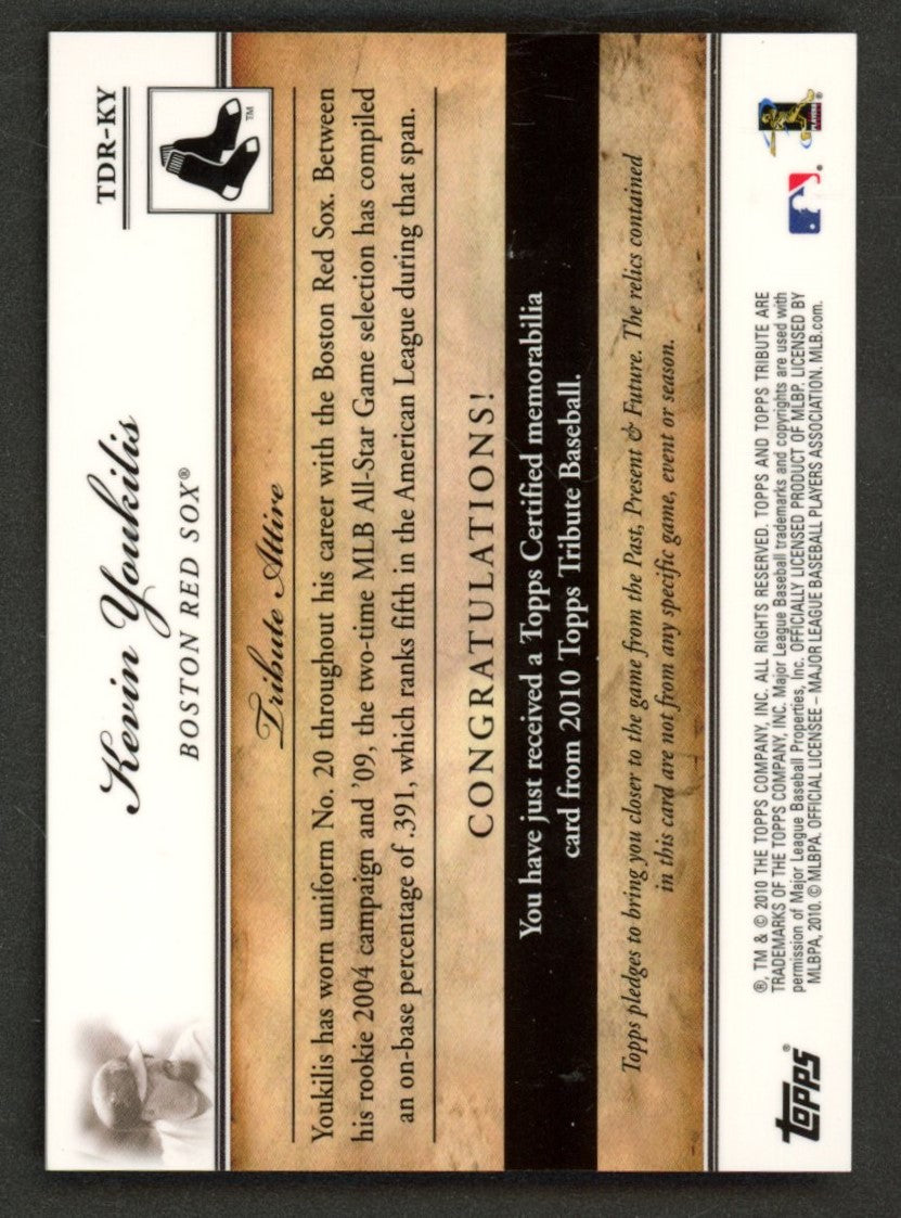 2010 Topps Tribute Dual Relic /99 Kevin Youkilis #TDR-KY BOSTON RED SOX