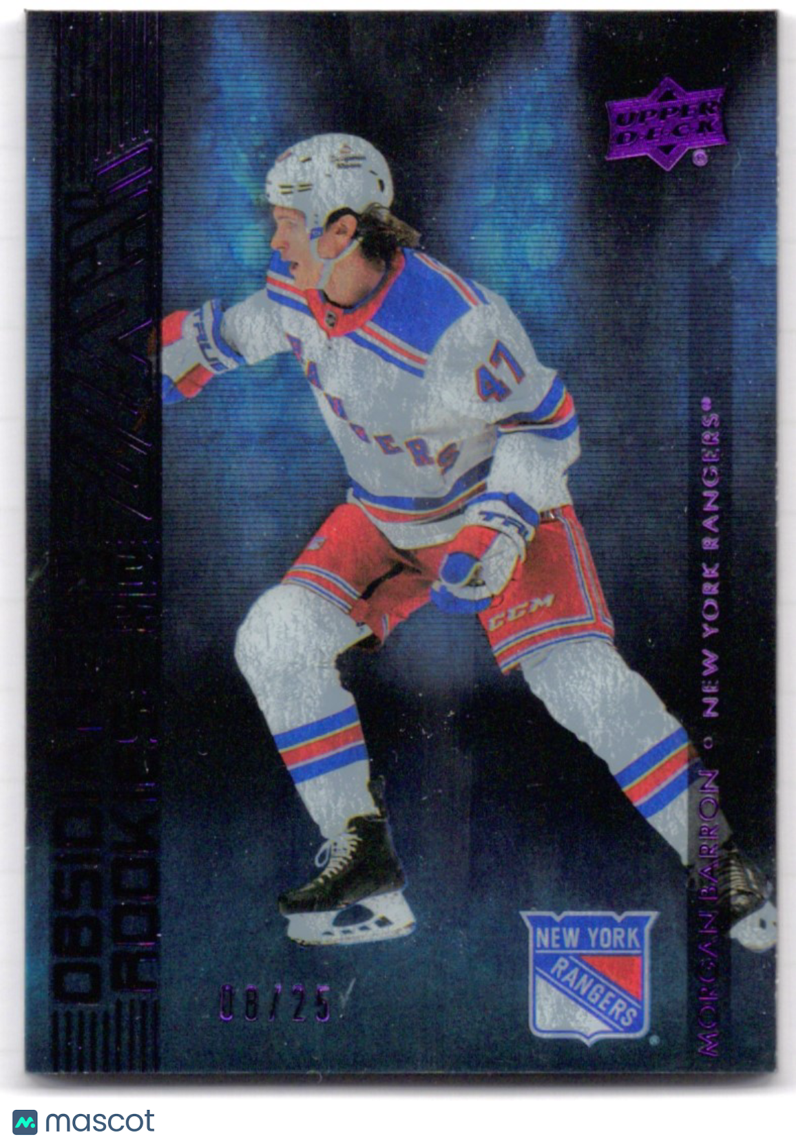 009-R8 You are purchasing a 2021-22 Upper Deck Black Obsidian Rookies Morgan Barron #OR-21. You will receive the exact item in the photographs. Thank you for looking. Card is scuffed Listed With Mascot.Returns & Exchanges