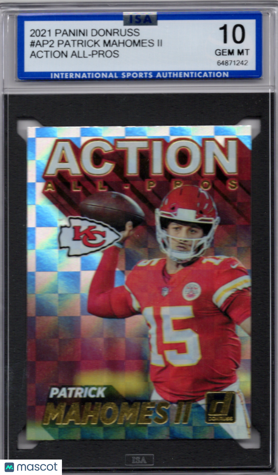 64871242-F7-1 You are purchasing a 2021 Panini Donruss Patrick Mahomes II #Ap2 Action All-Pros ISA 10. You will receive the exact item in the photographs. Thank you for looking. Listed With Mascot.Returns & Exchanges
