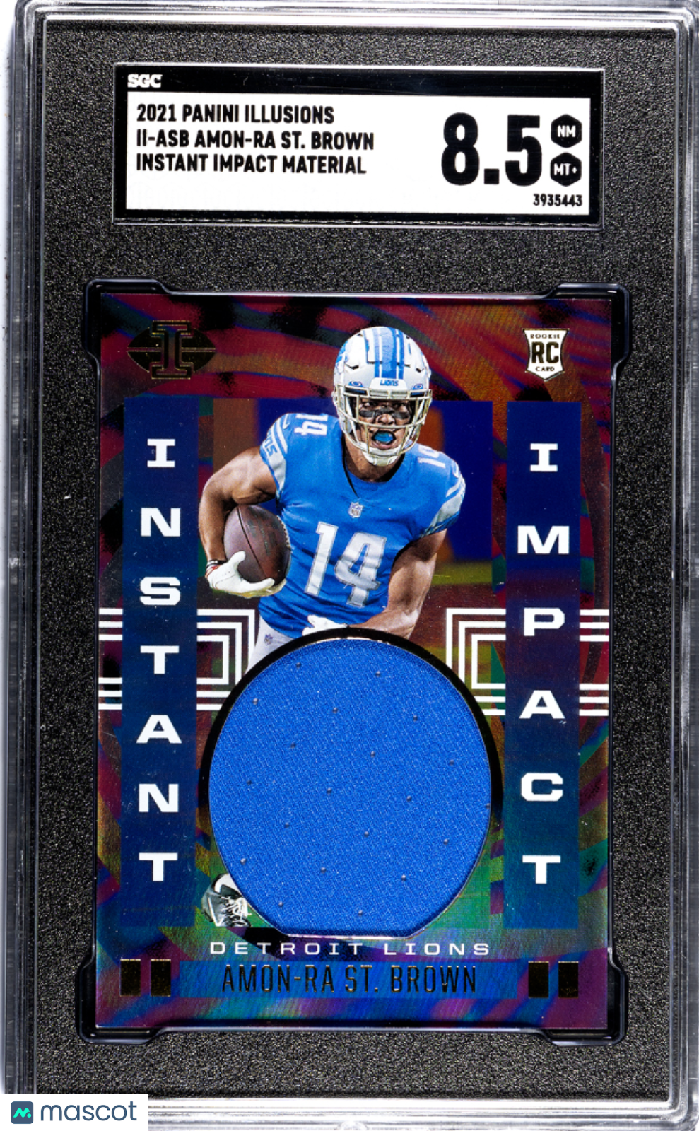 You are purchasing a 2021 Panini Illusions Amon-Ra ST. Brown #II-ASB Instant Impact Mat. SGC 8.5. You will receive the exact item in the photographs. Thank you for looking. Listed With Mascot.Returns & Exchanges