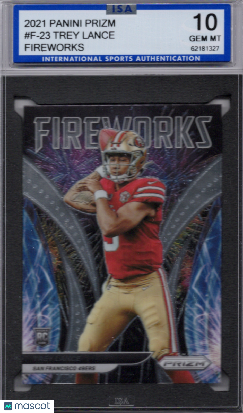 62181327-G2-1 You are purchasing a 2021 Panini Prizm Trey Lance #F-23 Fireworks ISA 10. You will receive the exact item in the photographs. Thank you for looking. Listed With Mascot.Returns & Exchanges