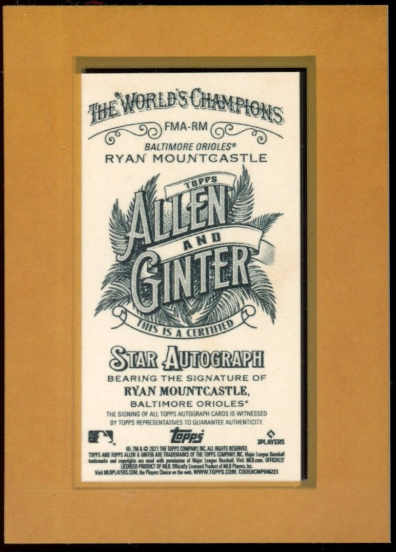 2021 Topps Allen & Ginter Ryan Mountcastle Framed Mini RC Auto #FMA-RM Orioles