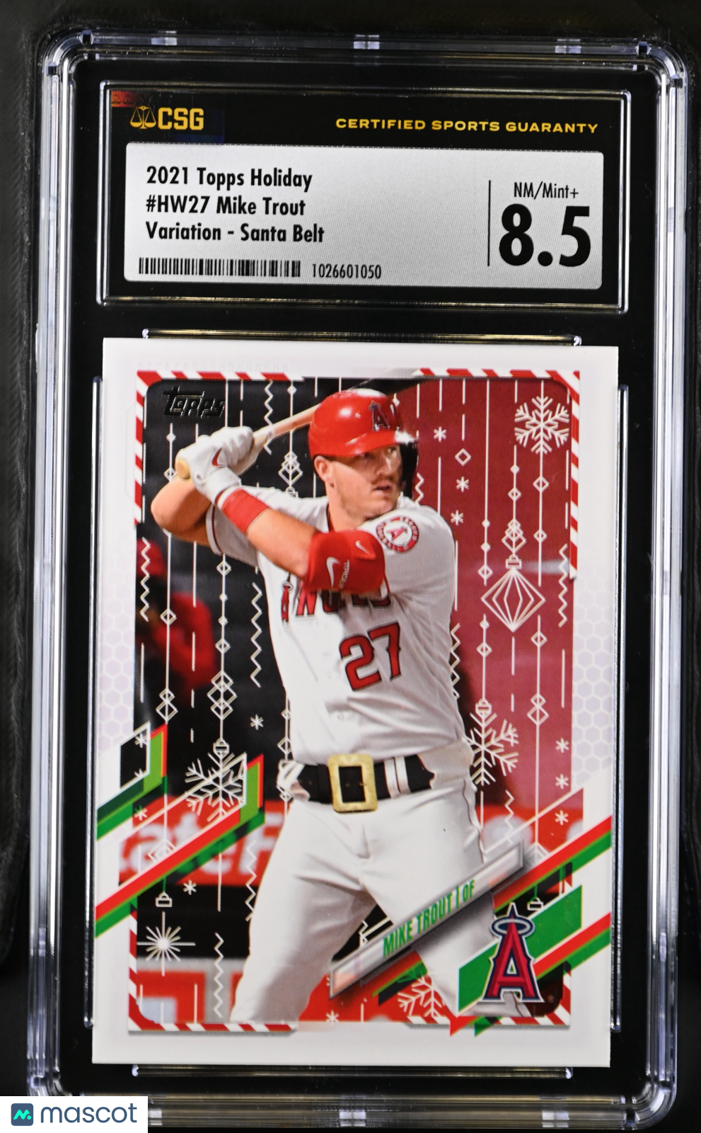 You are purchasing a 2021 Topps Holiday Mike Trout #HW27 Variation - Santa Belt Parallel/Variety CSG 8.5. You will receive the exact item in the photographs. Thank you for looking. Listed With Mascot.Returns & Exchanges