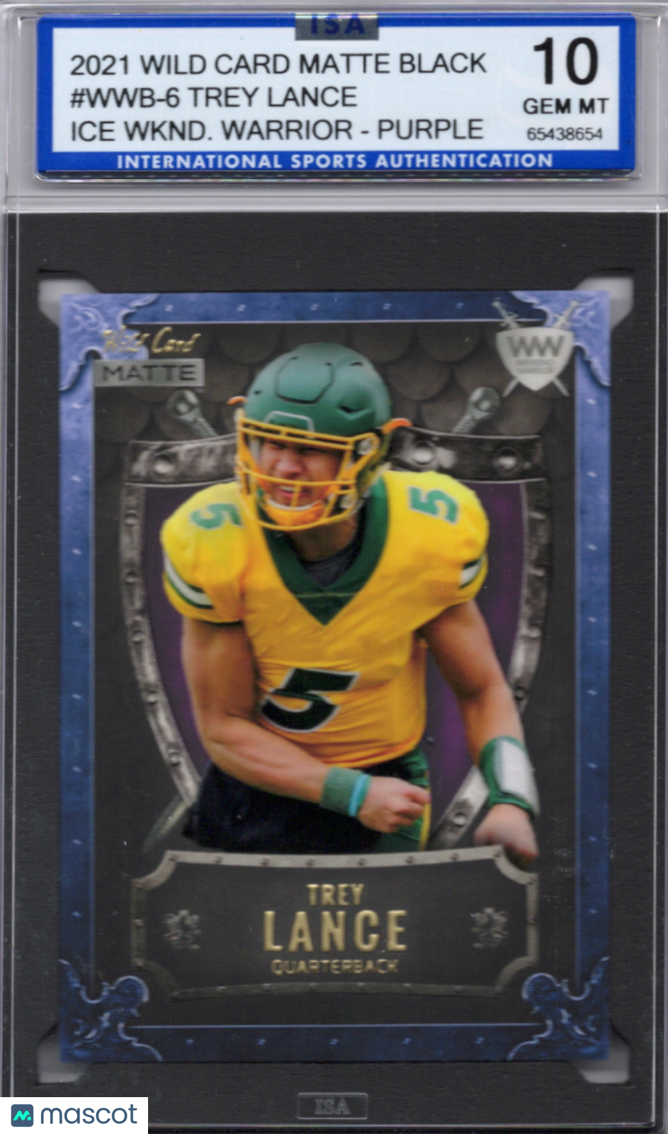 65438654-G2-1 You are purchasing a 2021 Wild Card Matte Black Trey Lance #WWB-6 Ice Weekend Warrior - Purple ISA 10. You will receive the exact item in the photographs. Thank you for looking. Listed With Mascot.Returns & Exchanges