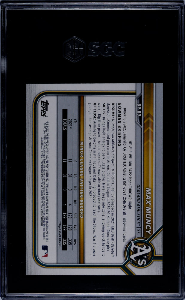 2022 Bowman Max Muncy Rookie RC #BP-89 Pros. Neon Green SGC 9.5