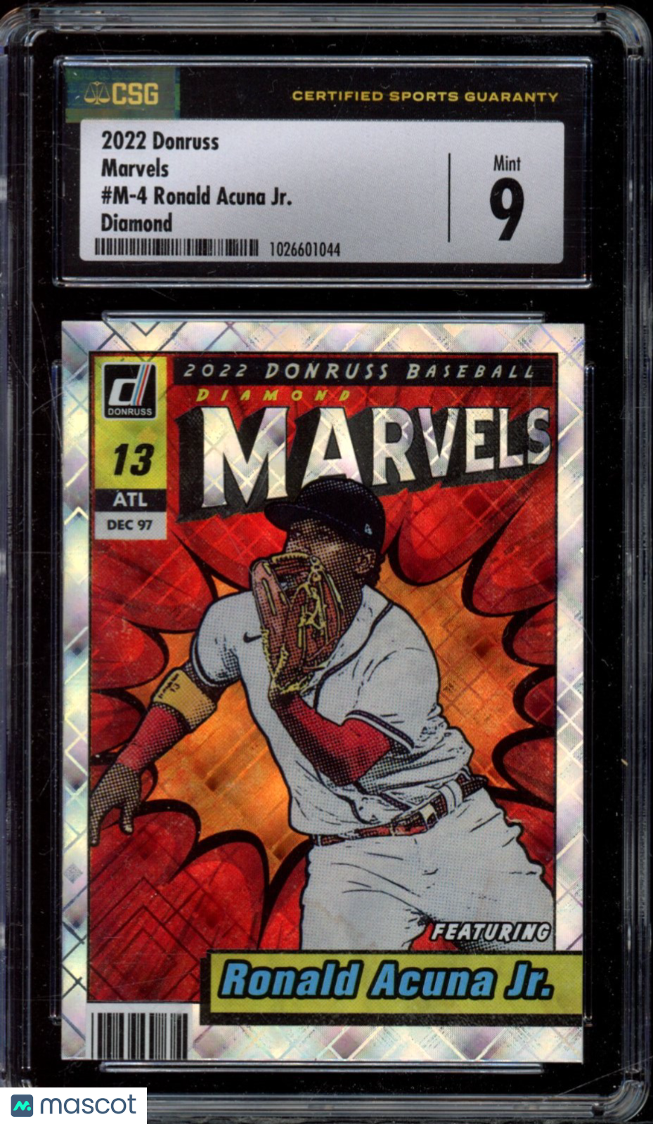 1026601044 C-5 You are purchasing a 2022 Donruss Ronald Acuna Jr. #M-4 Diamond Marvels CSG 9. You will receive the exact item in the photographs. Thank you for looking. Listed With Mascot.Returns & Exchanges