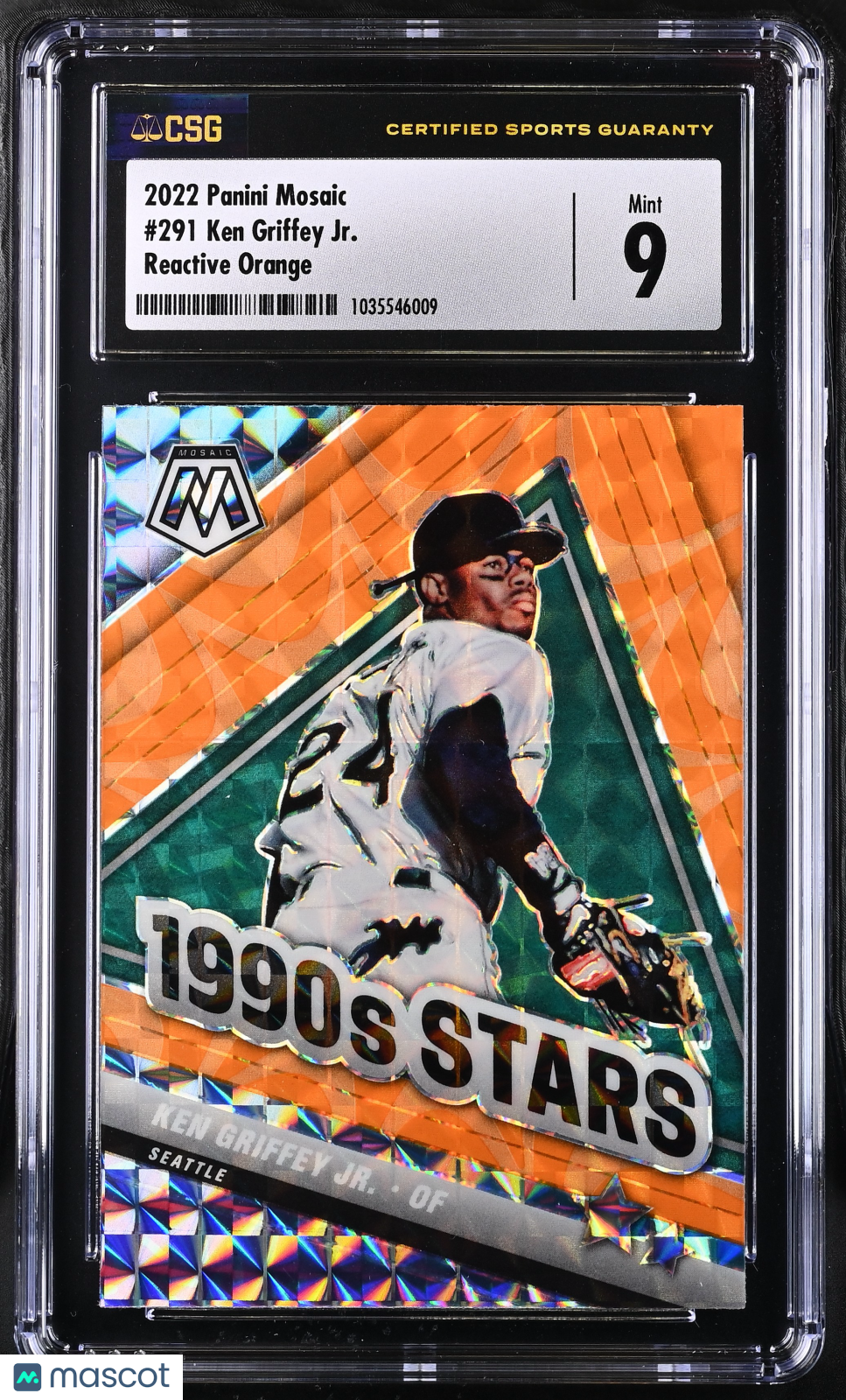 You are purchasing a 2022 Panini Mosaic Ken Griffey Jr. #291 Reactive Orange CSG 9. You will receive the exact item in the photographs. Thank you for looking. Listed With Mascot.Returns & Exchanges