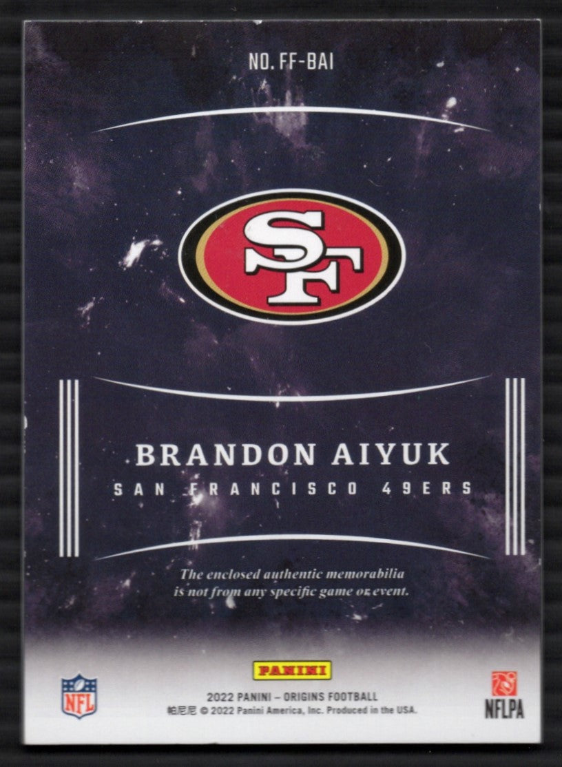 010-L51 You are purchasing a 2022 Panini Origins Football Brandon Aiyuk #BAI Patch 99/99. You will receive the exact item in the photographs. Thank you for looking. Listed With Mascot.Returns & Exchanges