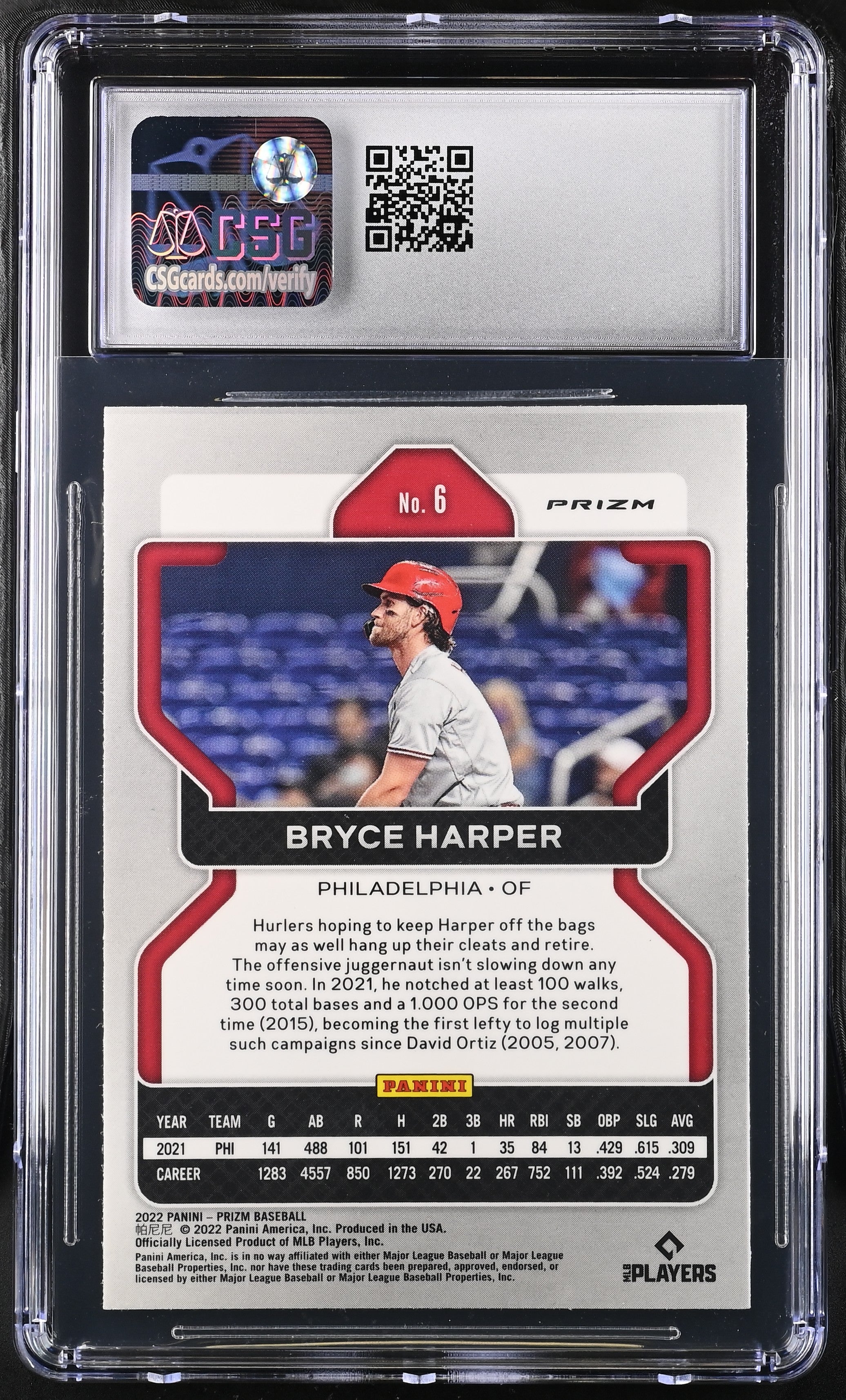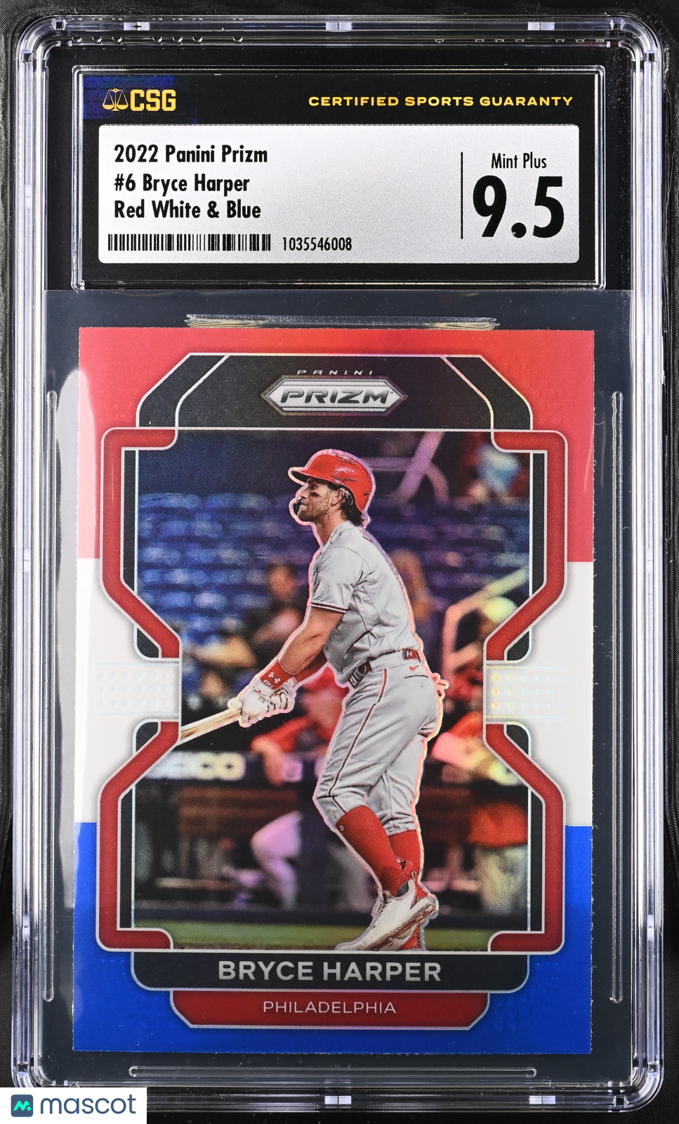 2022 Panini Prizm Bryce Harper #6 Red White & Blue CSG 9.5 Philadelphia Phillies