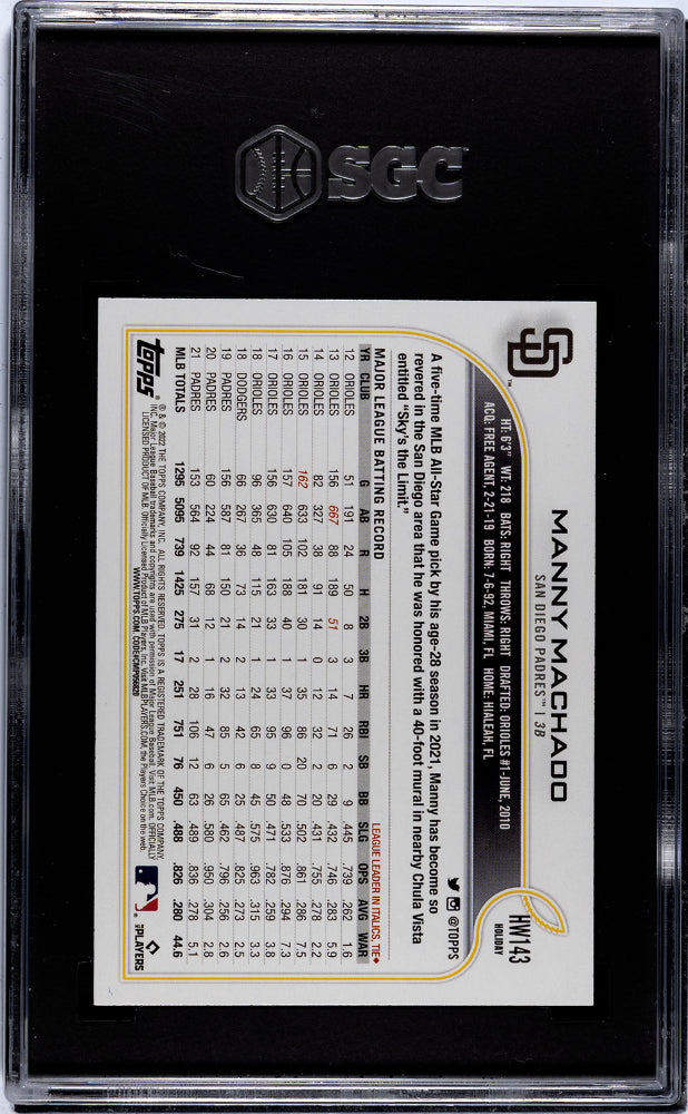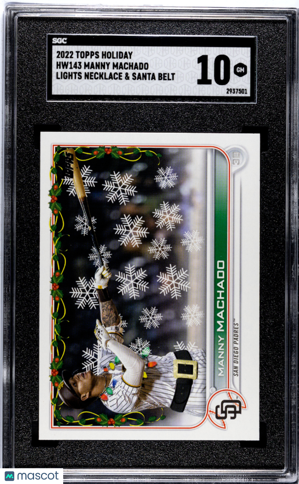 You are purchasing a 2022 Topps Holiday Manny Machado #HW143 Lights Necklace & Santa Belt SGC 10. You will receive the exact item in the photographs. Thank you for looking. (B-5) Listed With Mascot.Returns & Exchanges