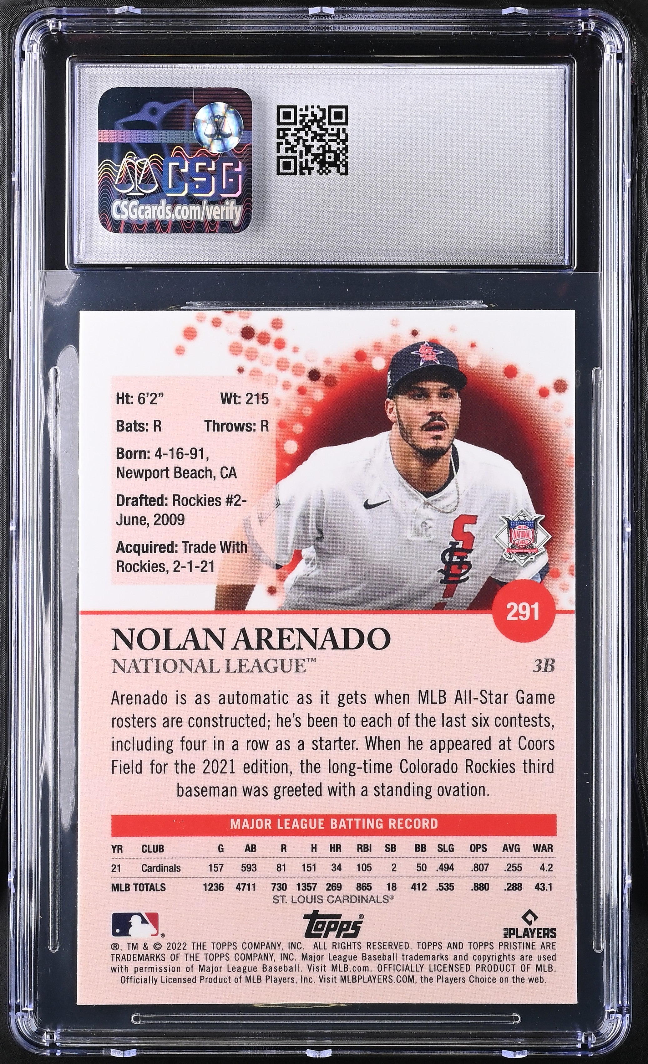 2022 Topps Pristine Nolan Arenado #291 CSG 10 St. Louis Cardinals