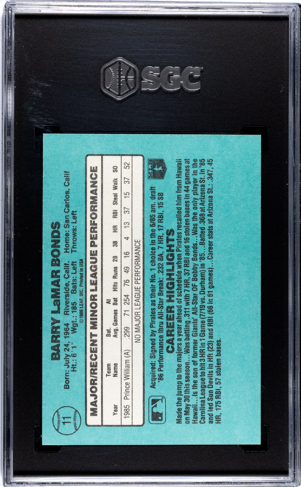 4479465-F1-1 You are purchasing a 1986 Donruss Rookies Barry Bonds #11 SGC 9.5. You will receive the exact item in the photographs. Thank you for looking. Listed With Mascot.Returns & Exchanges