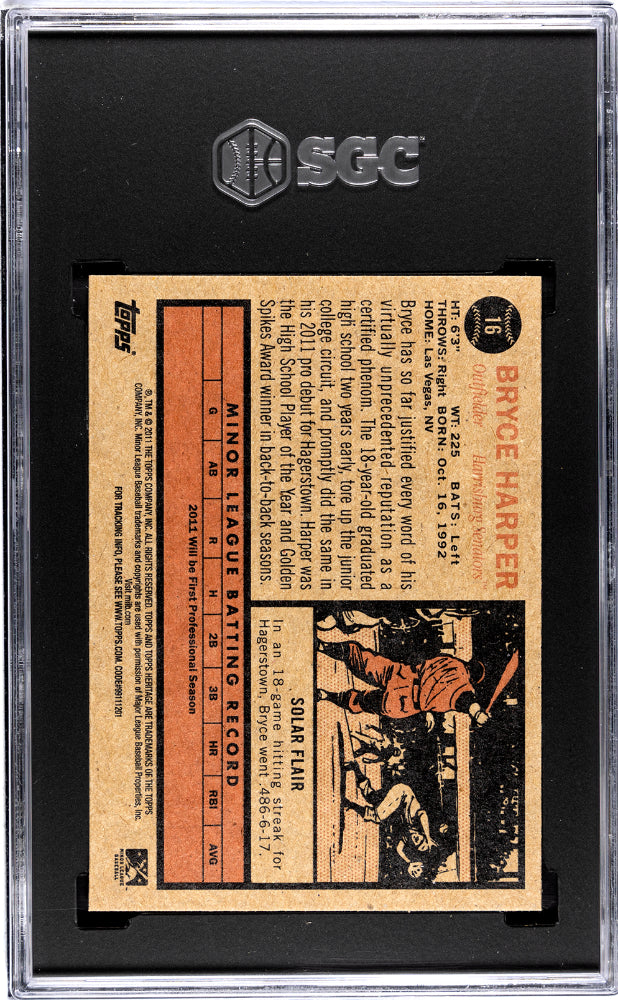 BRYCE HARPER 2011 TOPPS HERITAGE MINOR LEAGUE RC #16 SGC 9.5 Rookie